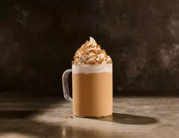 Freshly brewed espresso, foamed milk and naturally flavored crème brûlée syrup, topped with whipped cream and salted caramel sugar.