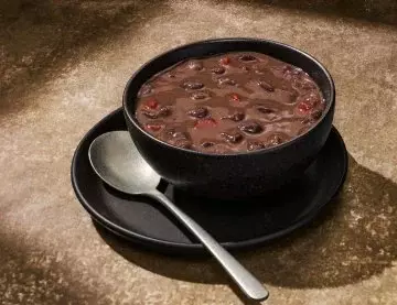 Returning to menu after 7 years, this guest favorite is a hearty vegetarian soup featuring black beans, onion, celery, red bell pepper, carrots, lima beans, potatoes, lemon juice, and garlic.